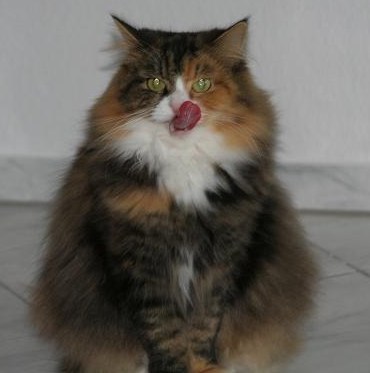 Ne braune Katze, die zu lange mit Hunden zusammen leben musste und daher manchmal das Gefühl vermittelt, dass sie vergessen hat, dass sie eigentlich ne Katze ist. Sie ist eine Perser - Norwegische Waldkatzen - Mischung.